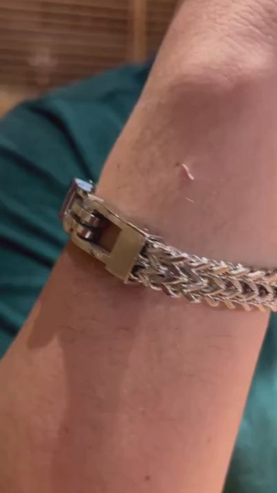 Brazalete italiano de acero platinado de 21 cm. broche de lujo