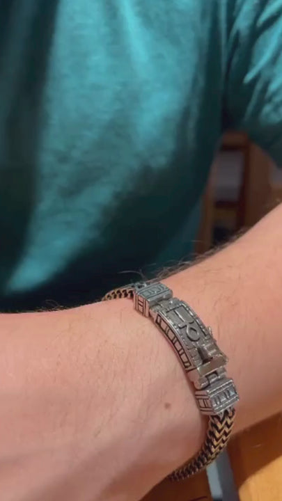 Brazalete simbolo de la vida en acero trenzado con doble broche