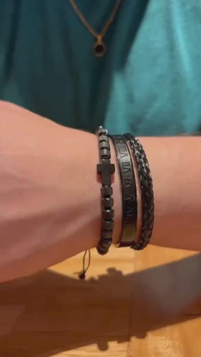 set de pulseras en acero jaguares trenzada y números romanos